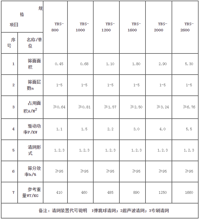 玻璃粉搖擺篩技術參數: